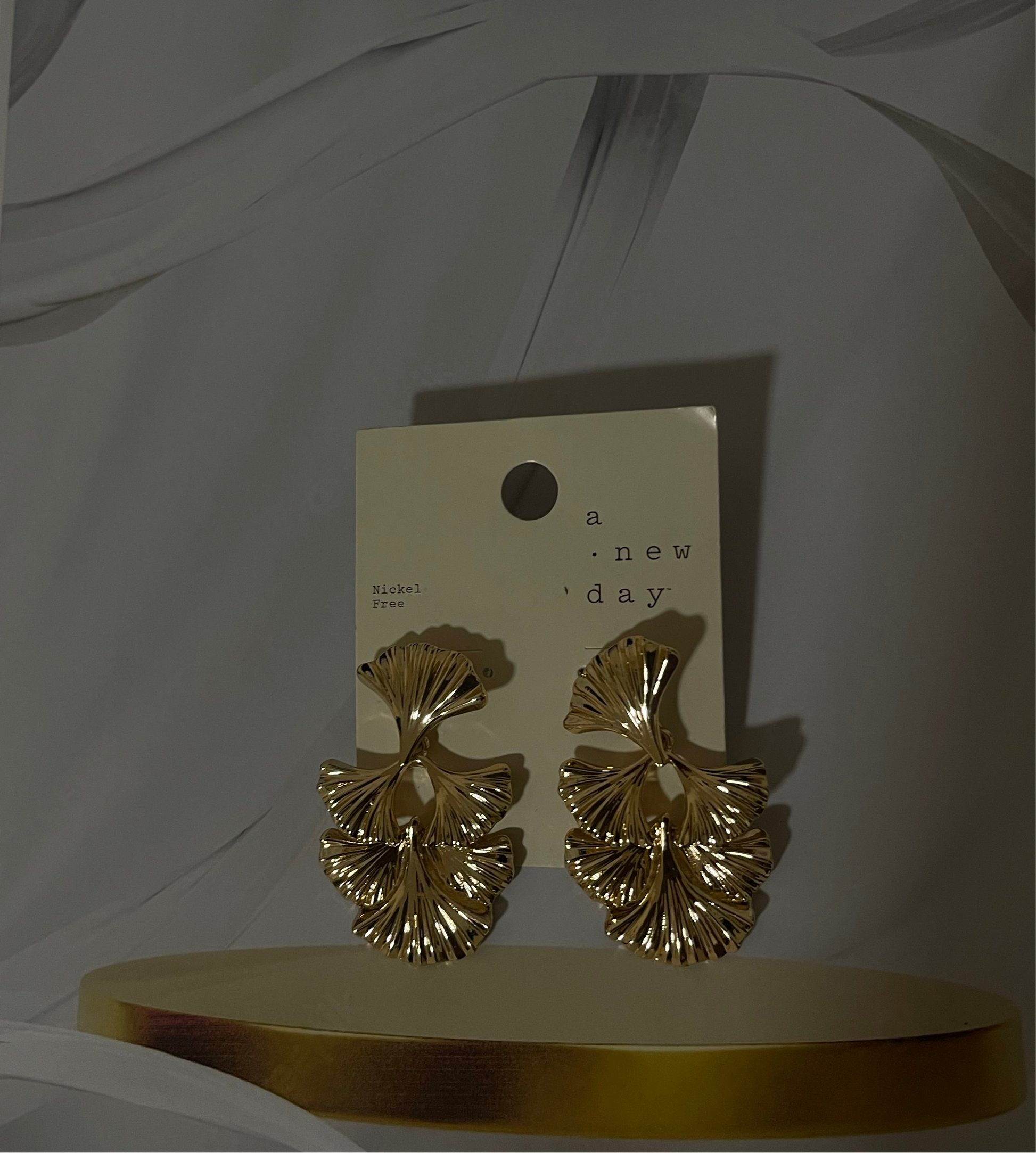 Inspired by the beauty of the ginkgo tree, these gold-colored drop earrings feature delicately textured leaves that shimmer with every movement. Lightweight and elegant, perfect for nature lovers and timeless style.